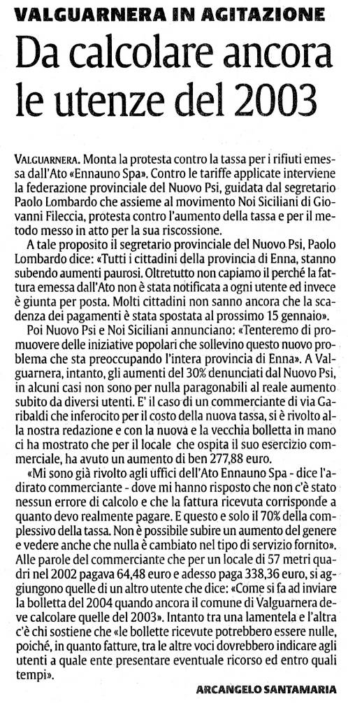 04/01/05 - Da "La Sicilia", Cronaca di Enna
